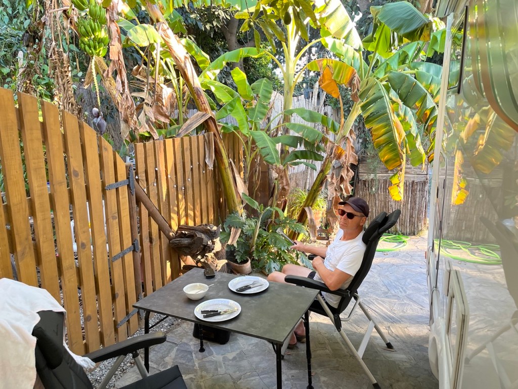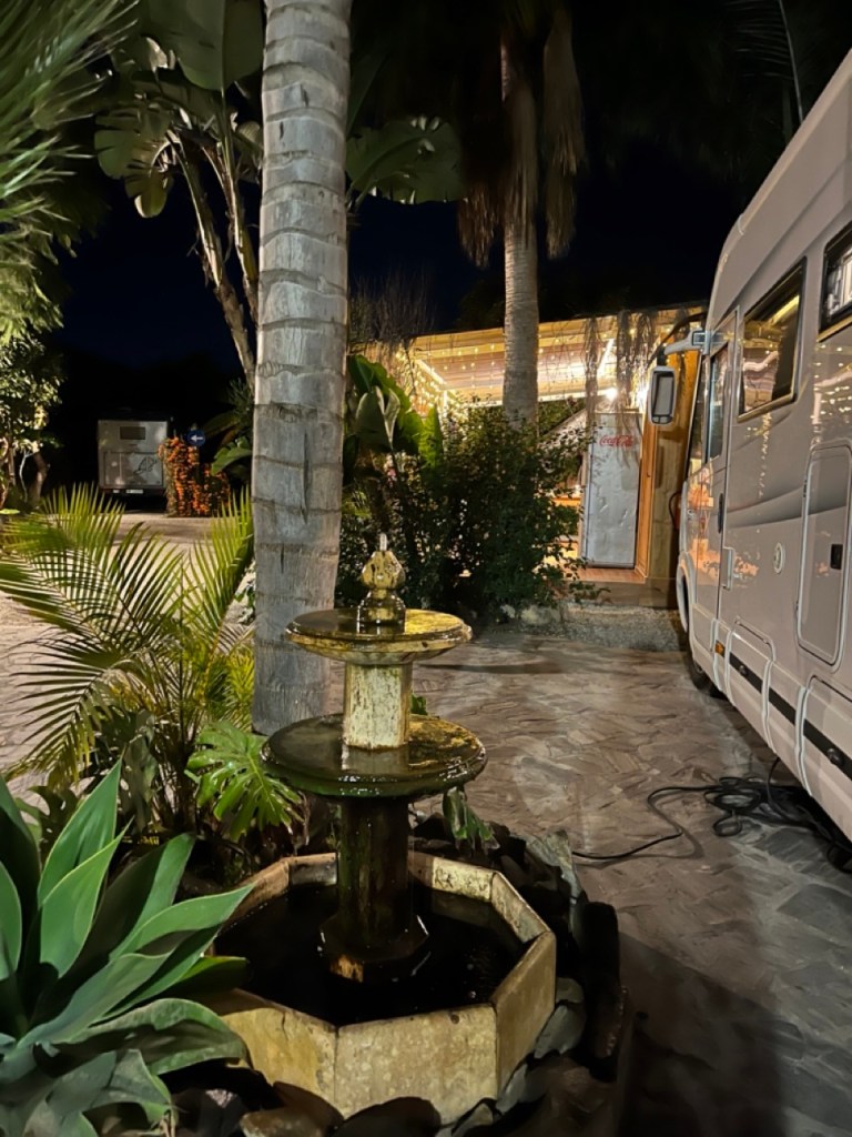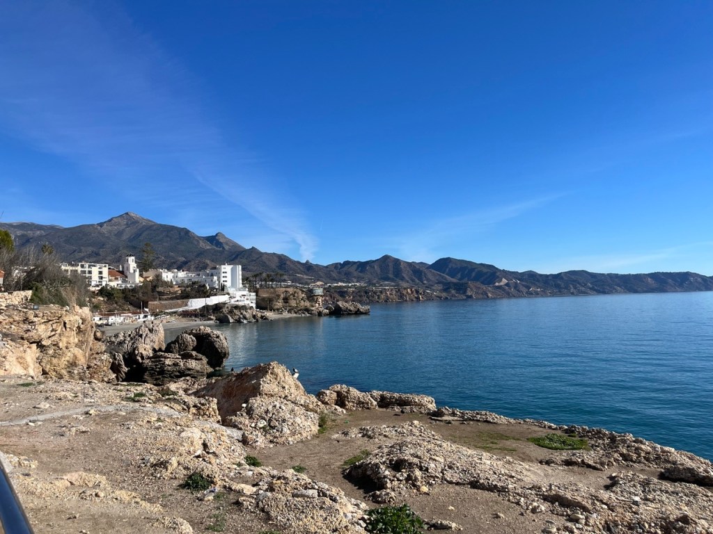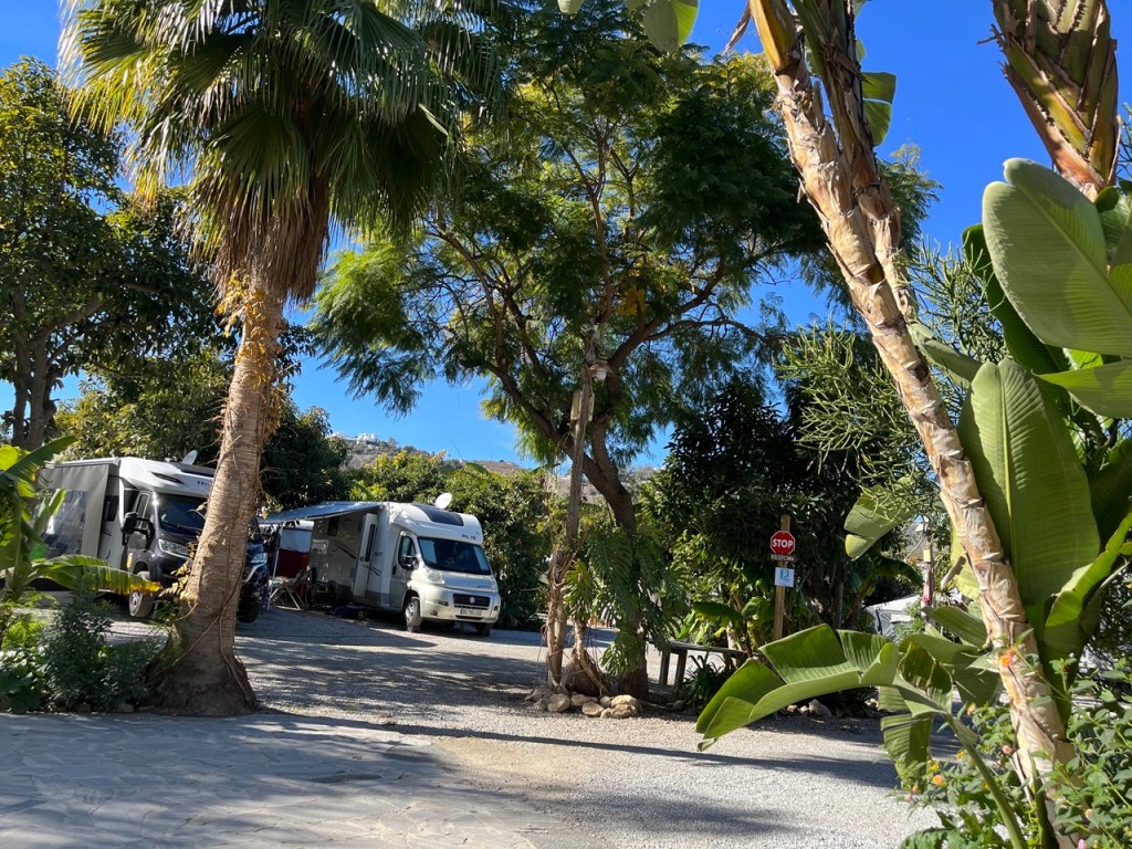 Från Almerimar åkte vi västerut till Nerja, inte så längt, ca 13 mil. Vi har hört många tala så gott om Nerja så vi var nyfikna på att komma dit. Vi fick en reservplats på vår första camping i Spanien (fortfarande galet fullbokat på många ställen). En ”djungelcamping” där vi fick bo under ett avokadoträd och omgärdad av bananplantor. Supermysigt och nära till stranden. Det har varit några väldigt varma dagar för årstiden. Över 20 grader och det är värmerekord för januari och har redan blivit vattenrestriktioner på vissa platser. Samtidigt ser vi hur Skåne är drabbat av galna översvämningar. Det är en tragisk utveckling som känns väldigt oroväckande. Vi har kört över många broar som har namn ”Rio ….” men inte med en droppe vatten i någon av dem – bara torrt damm.