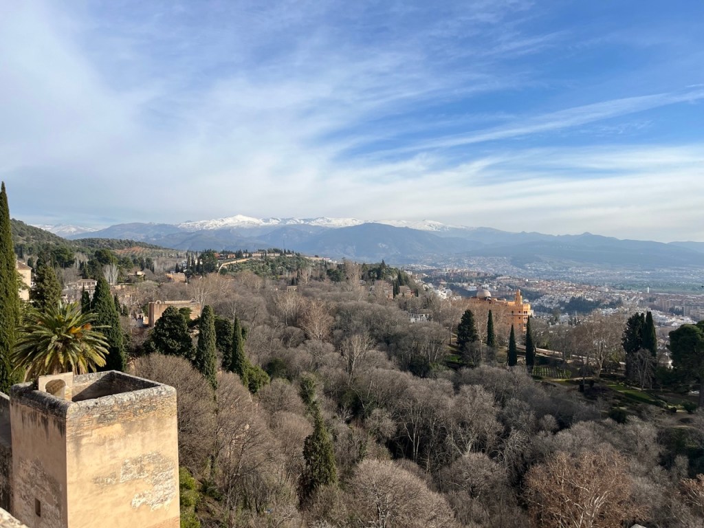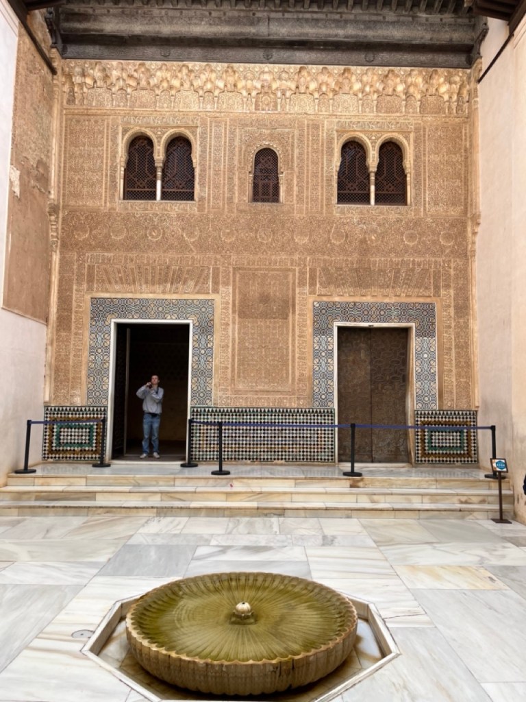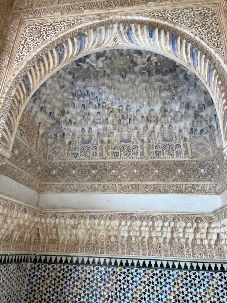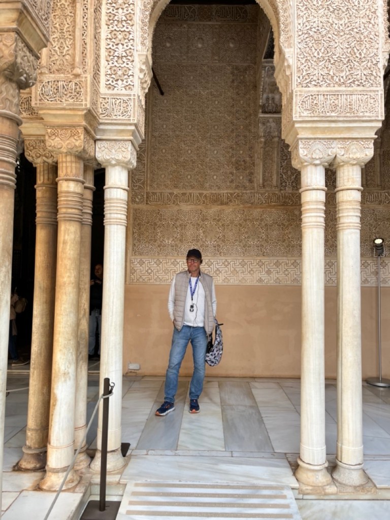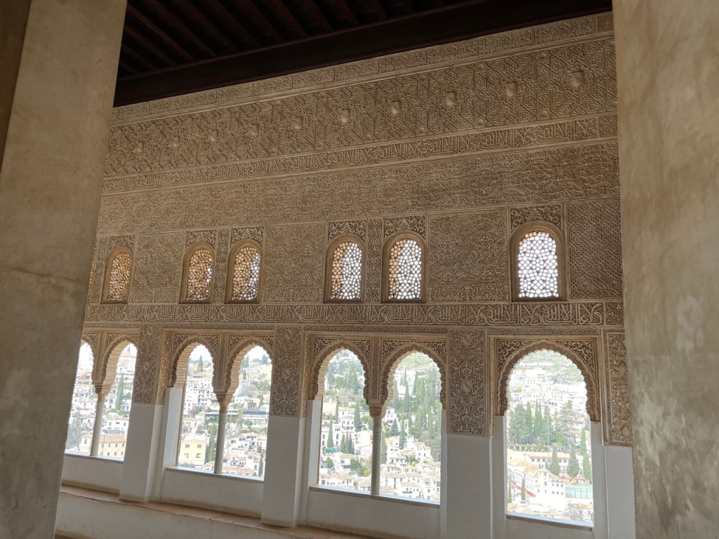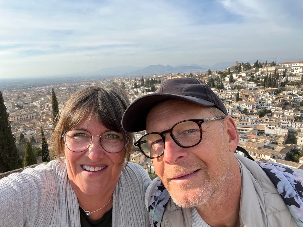 Vi bokade igår biljetter till Alhambra. Det är ju ett måste nu när vi är i Granada. Det blev en guidad tur på nästan 4 timmar. Det är en yta som motsvarar 40 fotbollsplaner så det är lite att gå igenom. Dessutom tog guiden allt snack på först spanska och sen engelska så liiite segt blev det men, wow – vilket imponerande byggnadsverk. Här bodde sultaner med sina fruar och konkubiner med en hel flock ungar. Man kan bara föreställa sig hur de njöt av lyx och flärd. Det är helt galet mycket detaljer i marmor och andra stenutsmyckningar, tak i trä, magiskt snidade trädörrar mm. Palatsen som en gång byggdes av moriska folk under Nasride-dynastin har därefter olika historer med rivningar, tillbyggnader och nybyggnader. Här finns mer att läsa om kulturminnet Alhambra. Uppe i högsta tornet har man också en fin utsikt över Sierra Nevada snötäckta toppar. Helt klart är Alhambra värt ett besök. I kväll lär vi somna gott efter en lång dag med fler steg än efter en 18-håls golfrunda.