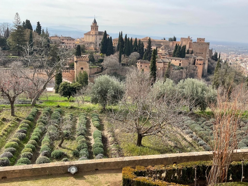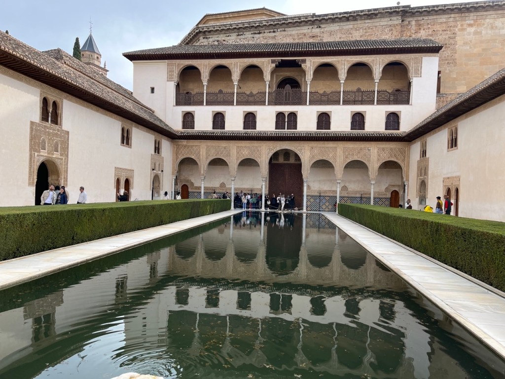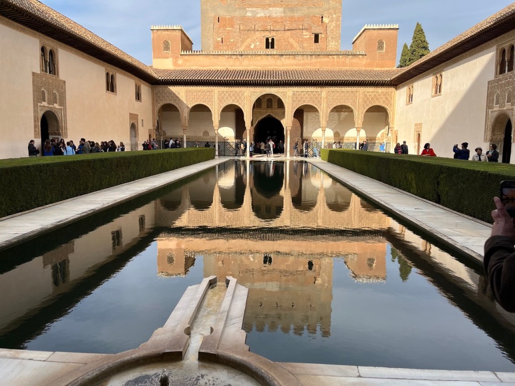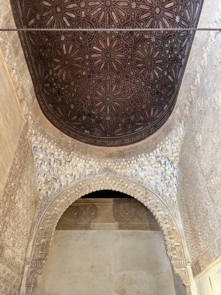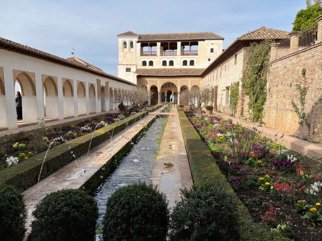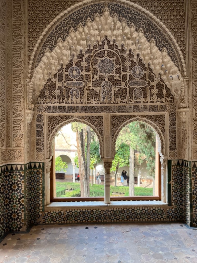 Vi bokade igår biljetter till Alhambra. Det är ju ett måste nu när vi är i Granada. Det blev en guidad tur på nästan 4 timmar. Det är en yta som motsvarar 40 fotbollsplaner så det är lite att gå igenom. Dessutom tog guiden allt snack på först spanska och sen engelska så liiite segt blev det men, wow – vilket imponerande byggnadsverk. Här bodde sultaner med sina fruar och konkubiner med en hel flock ungar. Man kan bara föreställa sig hur de njöt av lyx och flärd. Det är helt galet mycket detaljer i marmor och andra stenutsmyckningar, tak i trä, magiskt snidade trädörrar mm. Palatsen som en gång byggdes av moriska folk under Nasride-dynastin har därefter olika historer med rivningar, tillbyggnader och nybyggnader. Här finns mer att läsa om kulturminnet Alhambra. Uppe i högsta tornet har man också en fin utsikt över Sierra Nevada snötäckta toppar. Helt klart är Alhambra värt ett besök. I kväll lär vi somna gott efter en lång dag med fler steg än efter en 18-håls golfrunda.