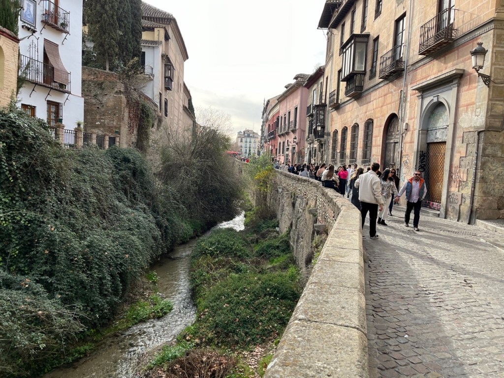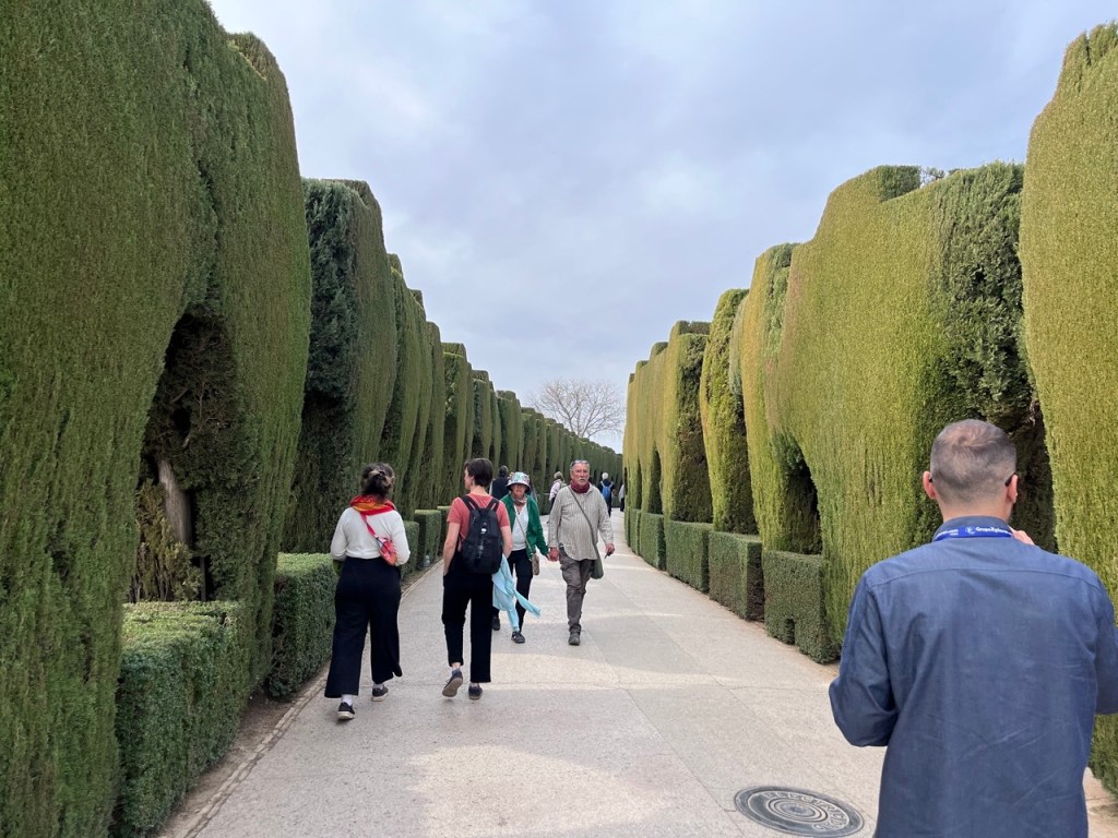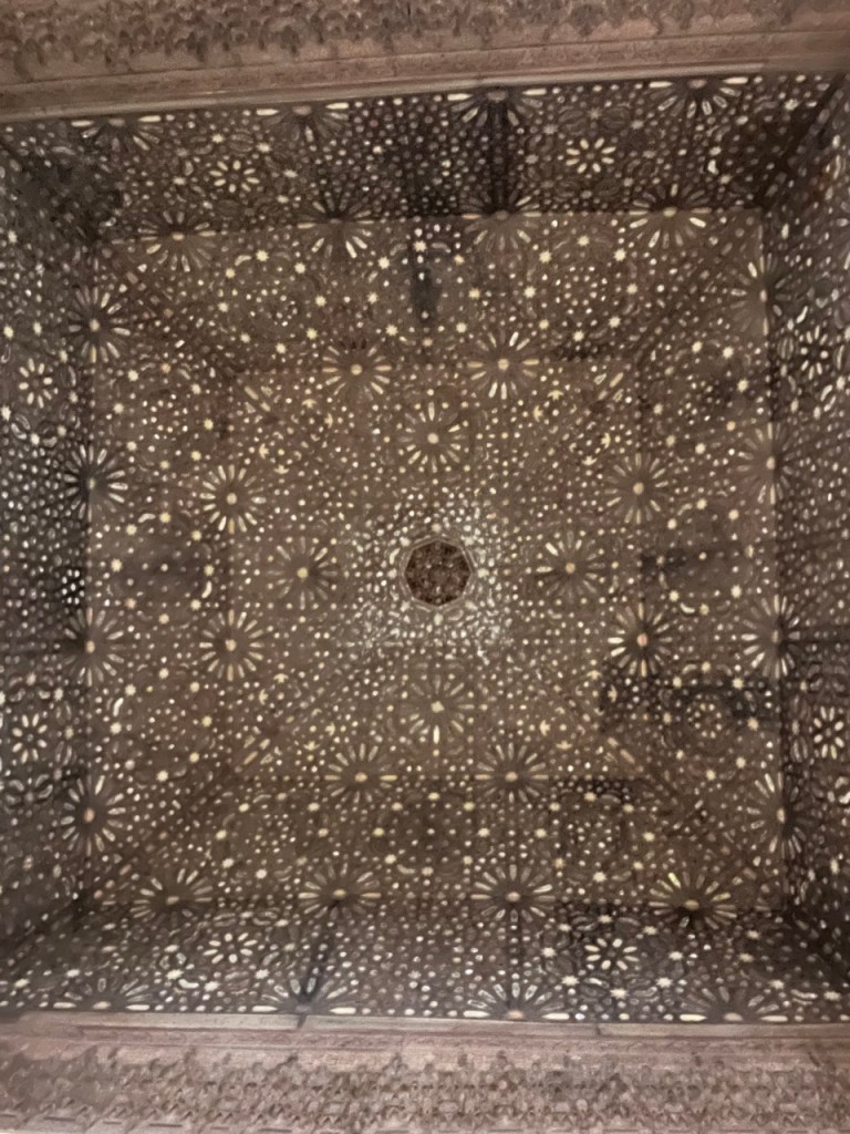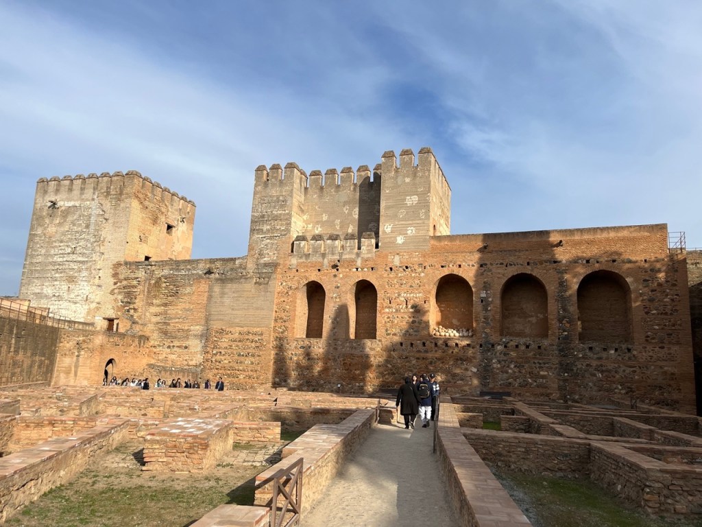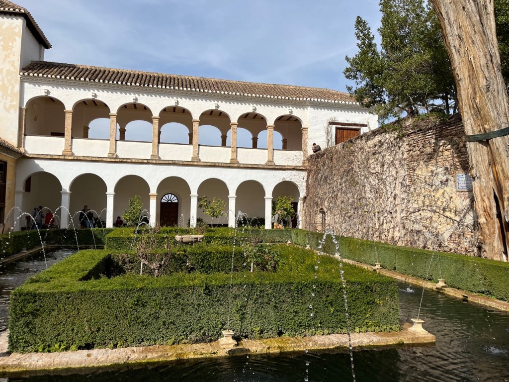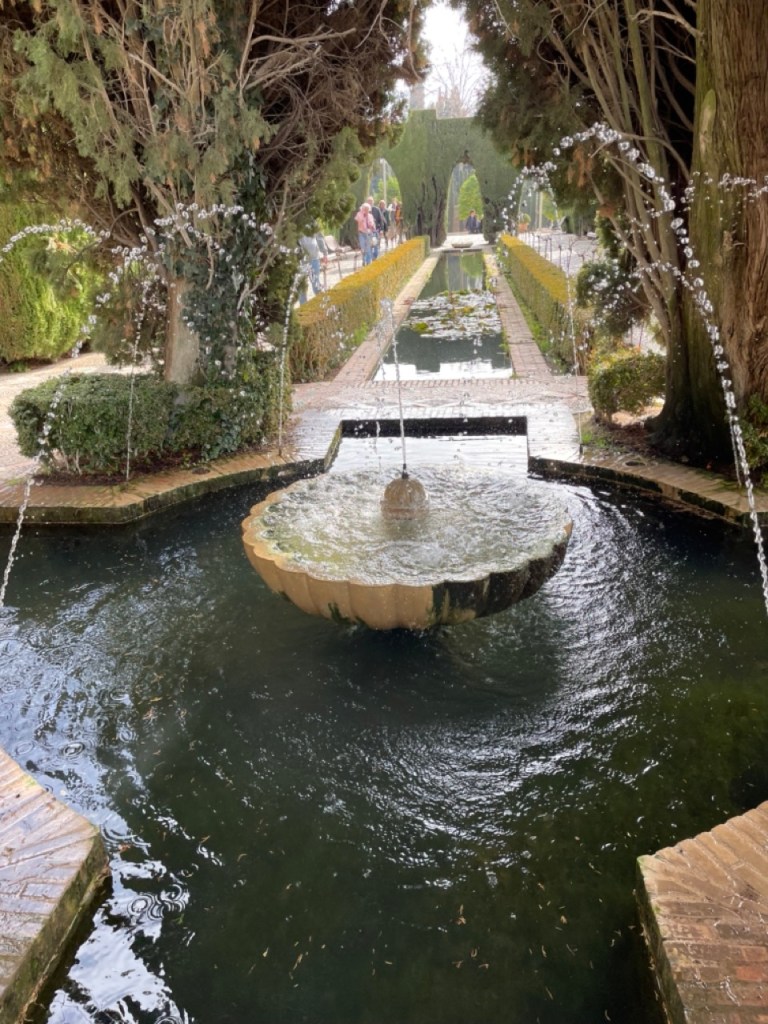 Vi bokade igår biljetter till Alhambra. Det är ju ett måste nu när vi är i Granada. Det blev en guidad tur på nästan 4 timmar. Det är en yta som motsvarar 40 fotbollsplaner så det är lite att gå igenom. Dessutom tog guiden allt snack på först spanska och sen engelska så liiite segt blev det men, wow – vilket imponerande byggnadsverk. Här bodde sultaner med sina fruar och konkubiner med en hel flock ungar. Man kan bara föreställa sig hur de njöt av lyx och flärd. Det är helt galet mycket detaljer i marmor och andra stenutsmyckningar, tak i trä, magiskt snidade trädörrar mm. Palatsen som en gång byggdes av moriska folk under Nasride-dynastin har därefter olika historer med rivningar, tillbyggnader och nybyggnader. Här finns mer att läsa om kulturminnet Alhambra. Uppe i högsta tornet har man också en fin utsikt över Sierra Nevada snötäckta toppar. Helt klart är Alhambra värt ett besök. I kväll lär vi somna gott efter en lång dag med fler steg än efter en 18-håls golfrunda.