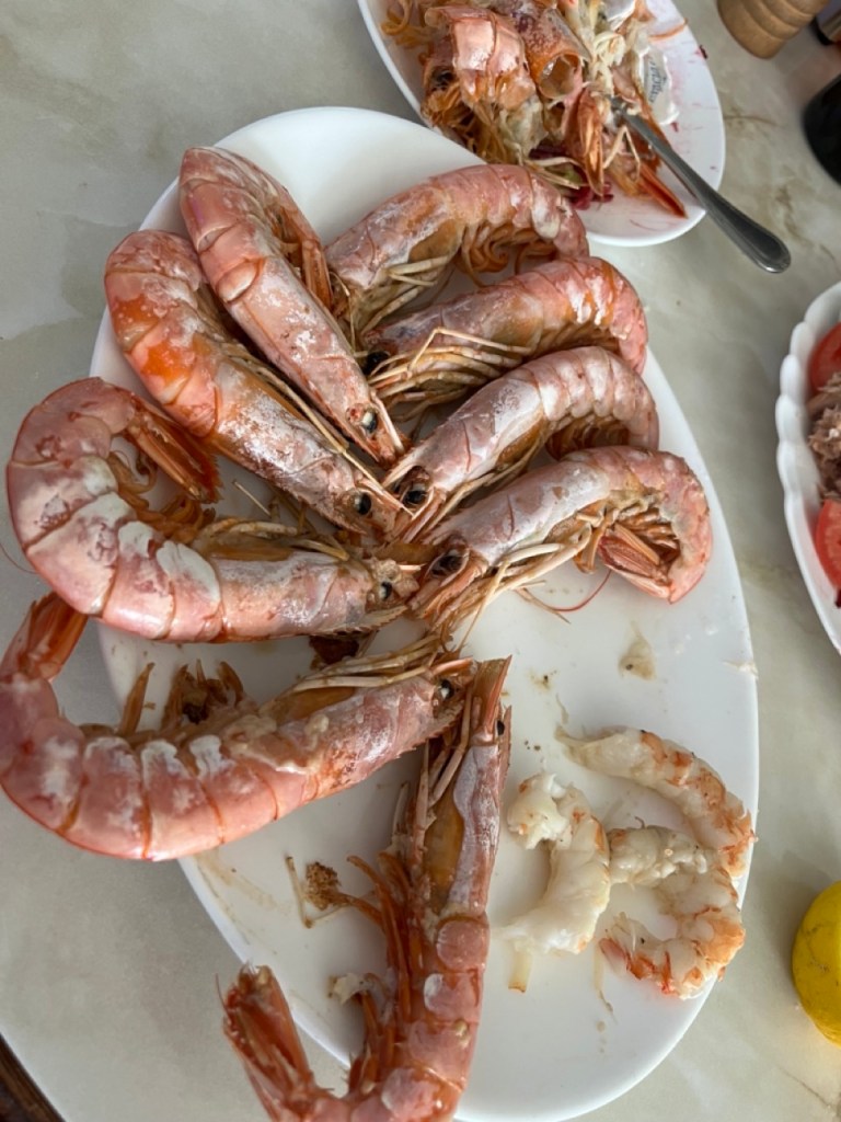 Idag har vi tagit en cykeltur till grannbyn och stannade på hemvägen och åt magiskt gott i solen. Vi fick också en upplevelse i hamnen där en delfin hade letat sig in mellan båtarna och höll lite show för oss 🐬. Vi träffade också en gris på strandpromenaden som, precis som vi, njöt i solen 🐷