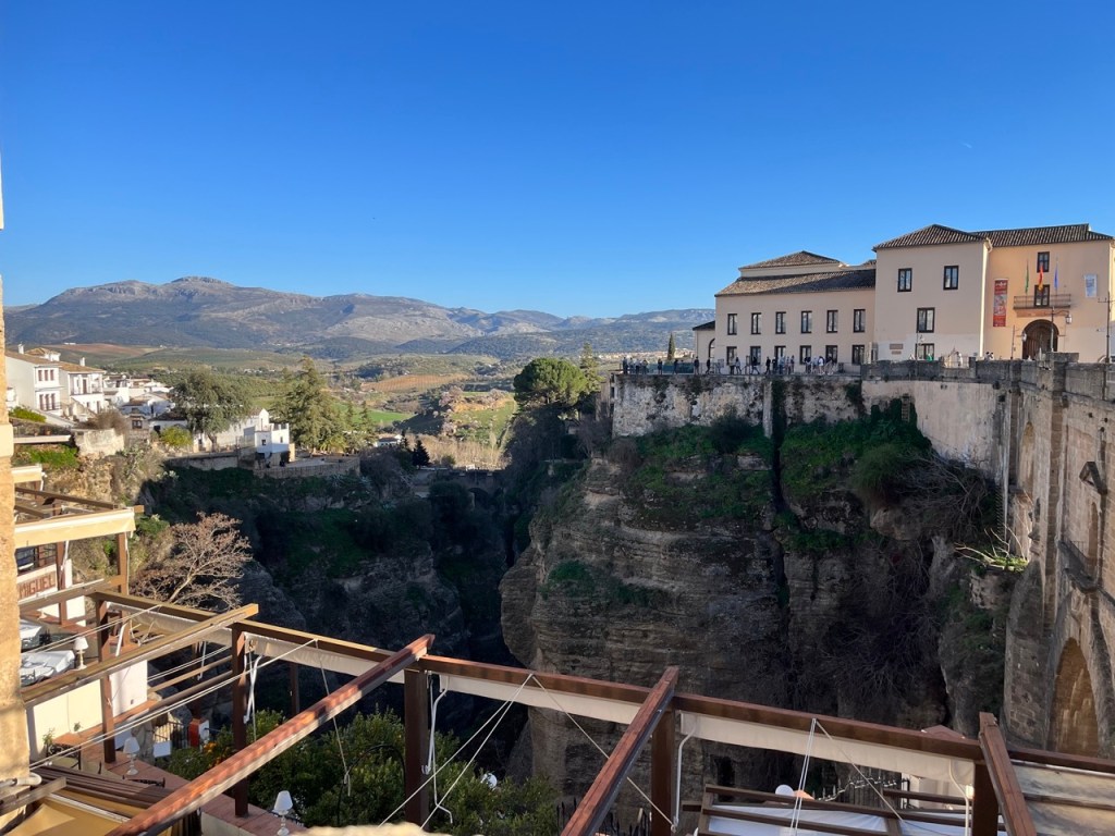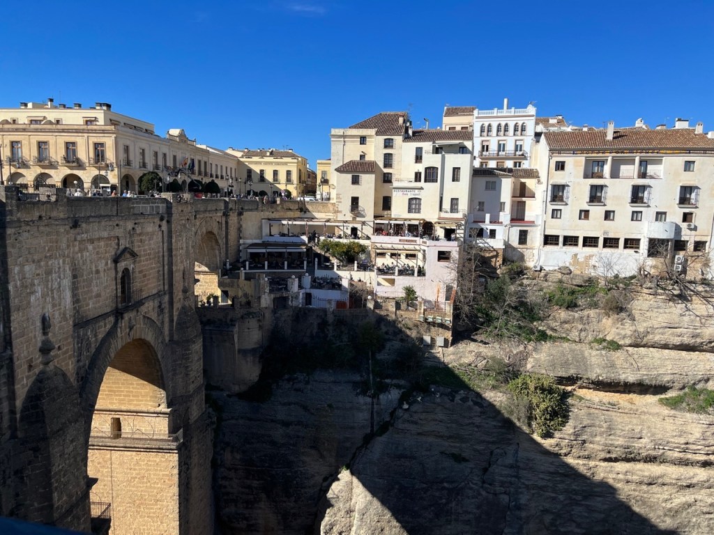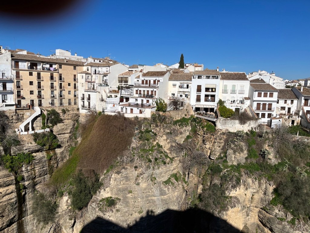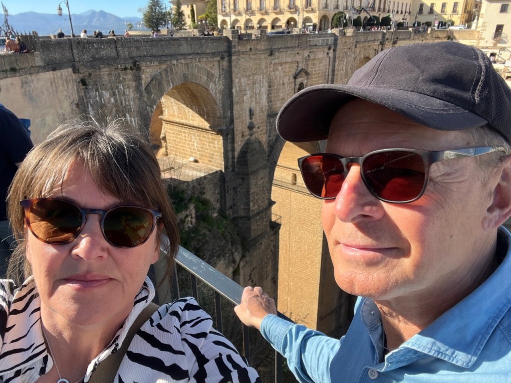 Vi ställde klockan på 07:00 och lämnade vår lugna plats. Det är nu den 1 februari och vi har varit ute med Moderskeppet i 38 dagar sedan vi lämnade Helsingborg den 25/12. Känns helt galet. Tiden går fort och det är många intryck så vi är glada att vi dokumenterar här i bloggen annars hade vi nog glömt hälften. Vi körde ca 18 mil till Ronda som också är en plats som vi ville pricka av på vår att-se-lista. Lite jobbig körning emellanåt då vi körde genom molnen uppe i bergen, värsta dimman. För andra gången på en vecka lyckades vi också köra fel inne i Ronda och hamna i infarten till ett parkeringshus 🙈. Bara att backa, trixa och vända om rakt emot trafiken och tutande spanjorer. Lite svettigt kan jag lova. Det är inte alltid bra att ha både bilens navigator och Google Maps igång samtidigt (och en mindre bra kartläsare). Vi kom trots allt lyckligt fram till ställplatsen i Ronda och har idag promenerat ut på den berömda bron och beundrat den magiska utsikten. En väldigt trevlig och mysig stad men just idag var nog 70% av alla restauranger stängda av någon anledning. Slutade med en hemmagrillad burgare i bilen och titta ifatt Sveriges Mästerkock. Vi käkade dock en god soppa på en restaurang vid bron i eftermiddags. Det var premiär för Ajoblancho. En kall soppa gjord på mandel, vitlök och olivolja med söt sylt. Inte alls dumt och till det vår första Sangria på den här resan. Det var ju på tiden! Vi stannar här i två nätter och väderprognosen lovar i morgon 17 grader och ☀️.