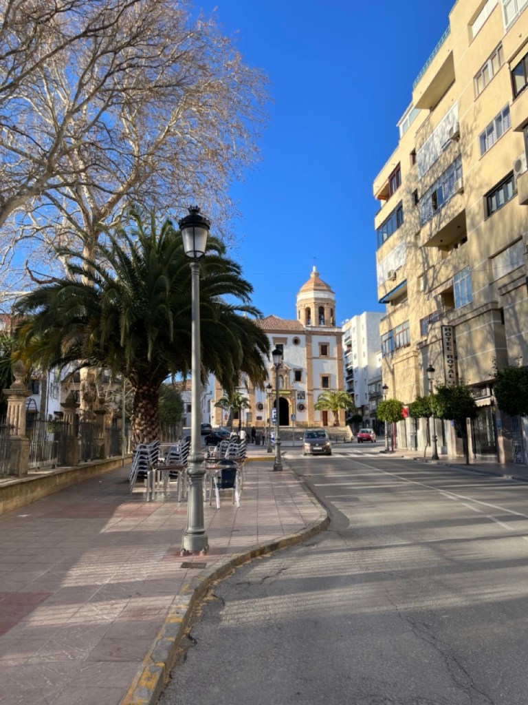 Efter en god natts sömn blev det en runda golf på La Duquesa trots avrådan från en vän. Den var i dåligt skick men hade magiska vyer på framför allt de sista 9 hålen. Vi lämnade dagen efter Manilva-området och fortsatte västerut. Lite kul att vi på kvällen zappade förbi en TV-kanal som visade ”En plats i solen” och som just i det avsnittet kollade på lägenheter i Manilva-området. Vad var oddsen för det?