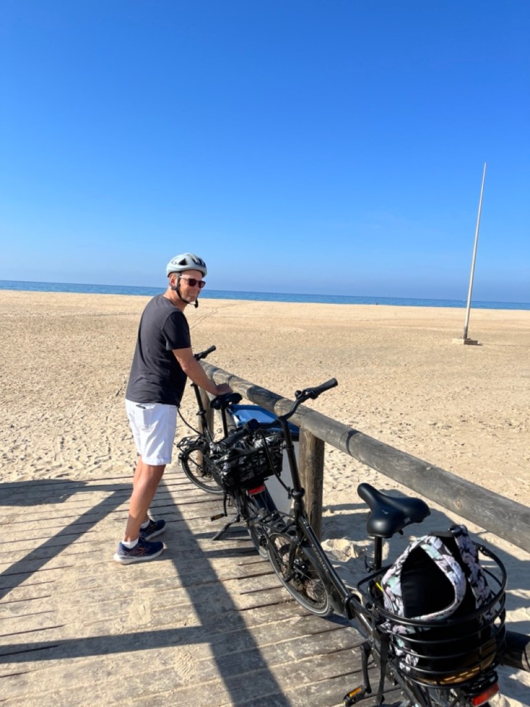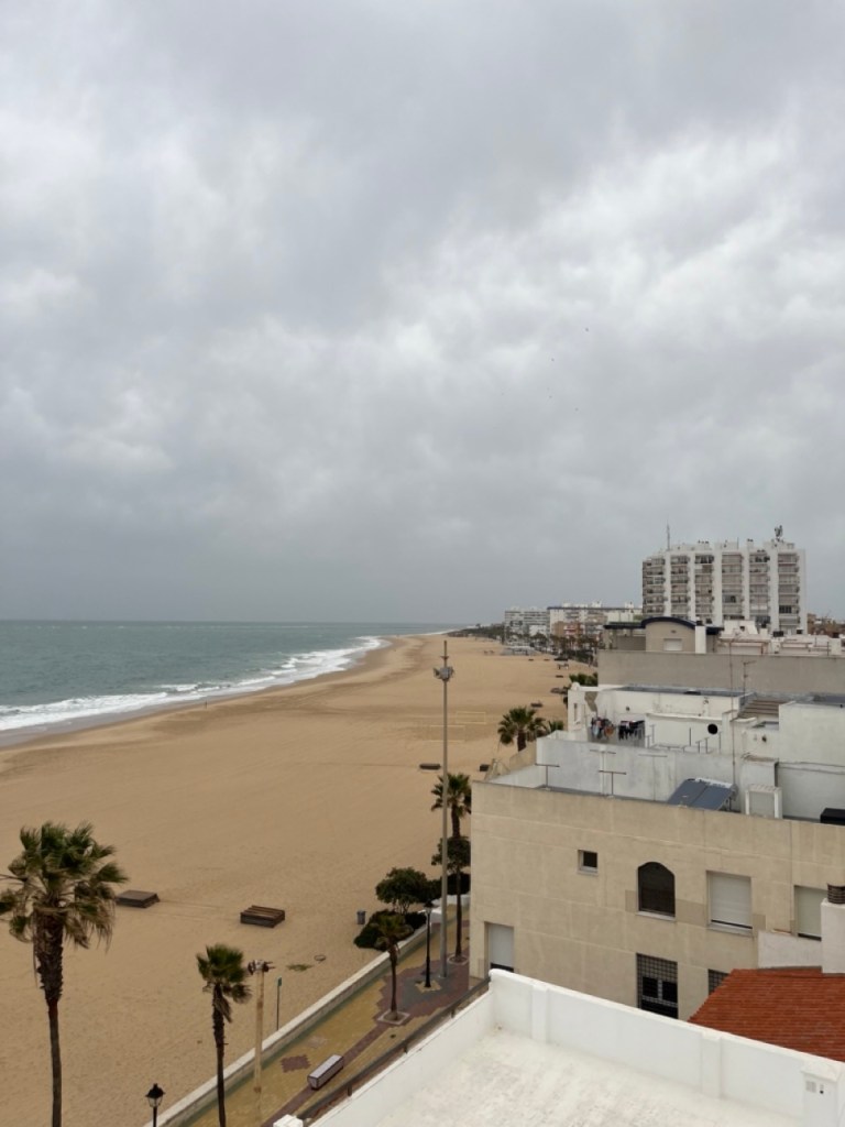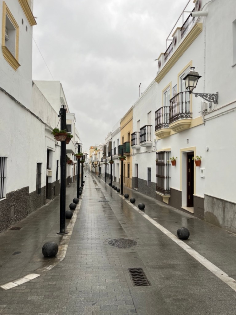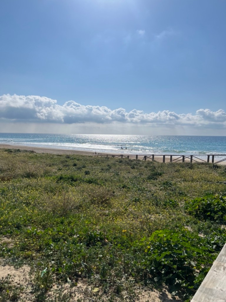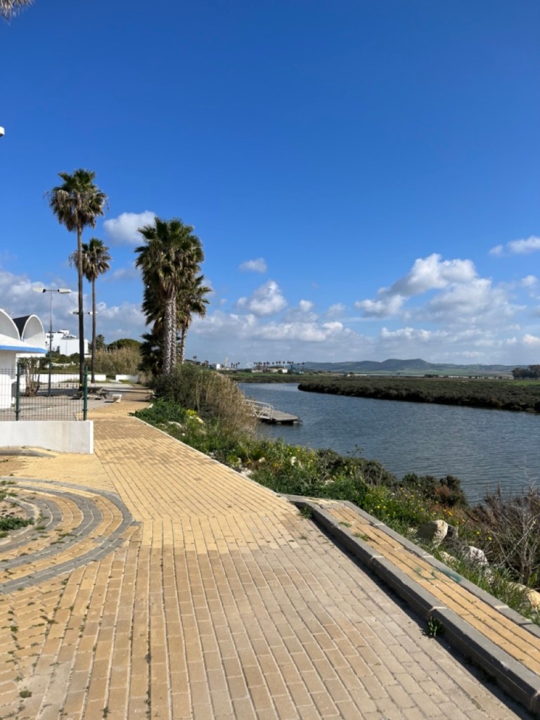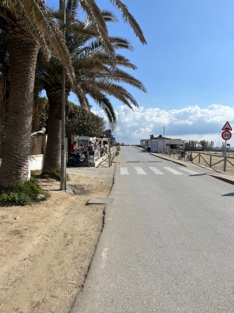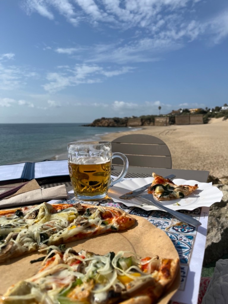 Nästa stopp blev El Palmar de Vejer. Vi kollade på kartan och tyckte det verkade bra. Bokade ställplats och blev glatt överraskade av den charmiga lilla surfinghålan. Trots 15 grader i vattnet var det massor av surfare som kämpade i vågorna. Förvisso med våtdräkter. Längs den flera kilometer långa strandvägen ligger det massor av coola surfhak och vi insåg att vi för första gången på resan tillhörde det äldre gardet i byn. Många hemmasnickrade husbilar och campervans med surfbrädor på taket. Det märktes också på menyerna – inga tapas, men massor av hummus, poké bowls och annat gott. Det har vi längtat efter. Grannbyn, ca 7 km västerut heter Conil de la Frontera och ligger som en stor vit fläck i horisonten när man kollar från El Palmar. Vi blev så klart nyfikna och cyklade dit. En jättemysig liten stad med en fantastisk lång och bred sandstrand. Det är kul att upptäcka sådana här små guldkorn som vi tidigare aldrig hört talas om. Vi är nu vid Atlantkusten och har lämnat Medelhavet bakom oss på denna resa.