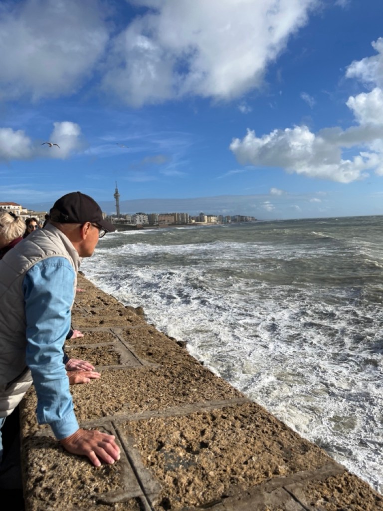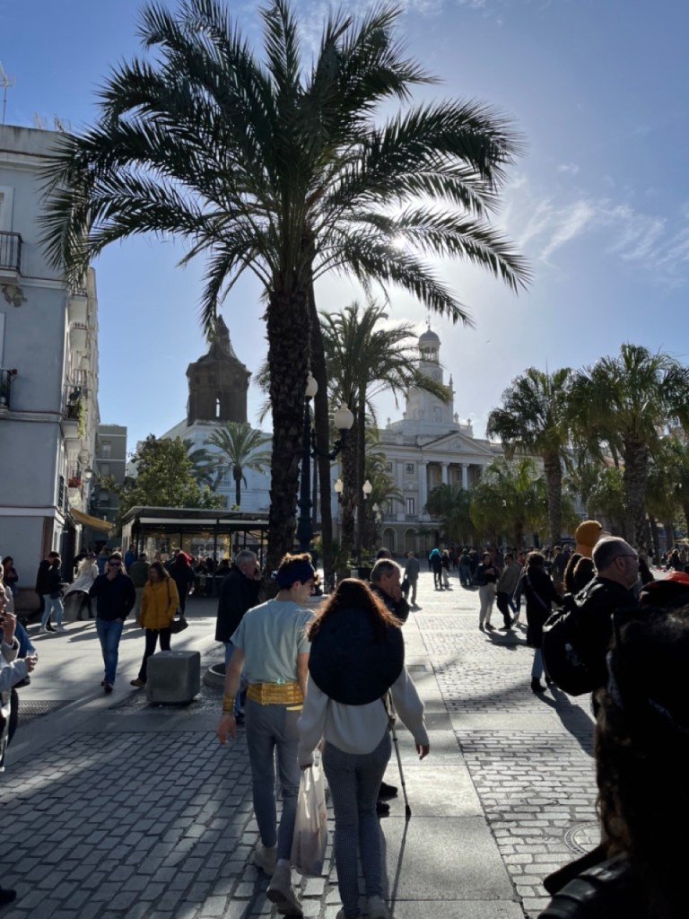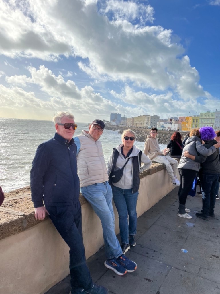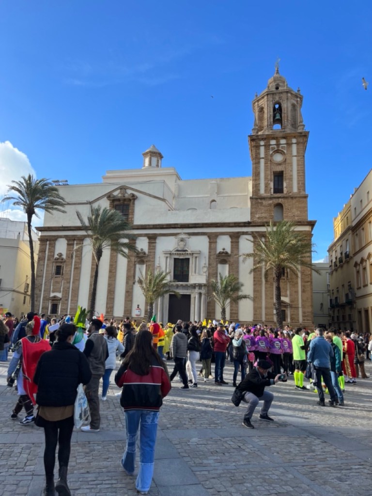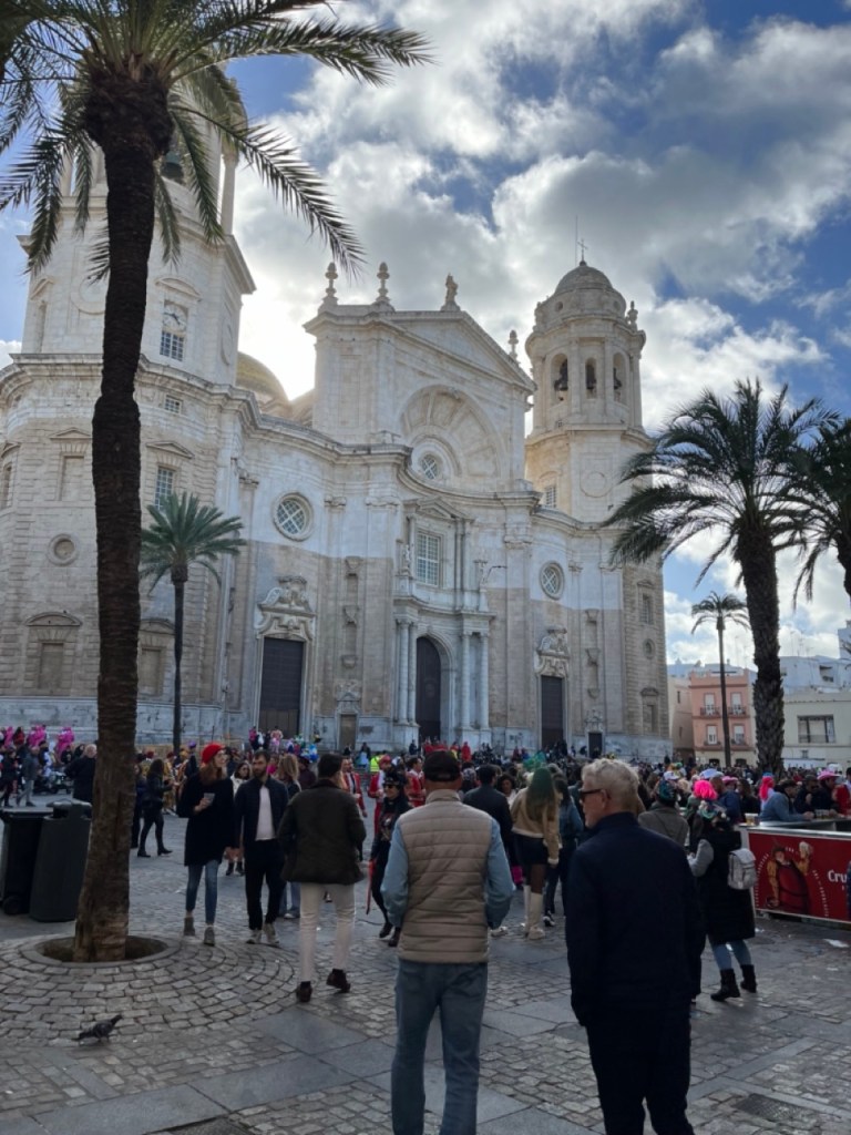 Vi åkte på lördagen till Cádiz där karnevalen startade samma dag. Massor av glada och utklädda spanjorer gjorde vårt besök extra minnesvärt. Ett gäng utklädda till spanjorer underhöll med skönsång under middagen. Tyvärr var det näst intill omöjligt att hitta parkering i staden. Totalt fullproppat överallt, även i parkeringshusen, så vi fick inte så lång tid i staden som vi önskat men hann ändå se en hel del. Vacker stad 🙂