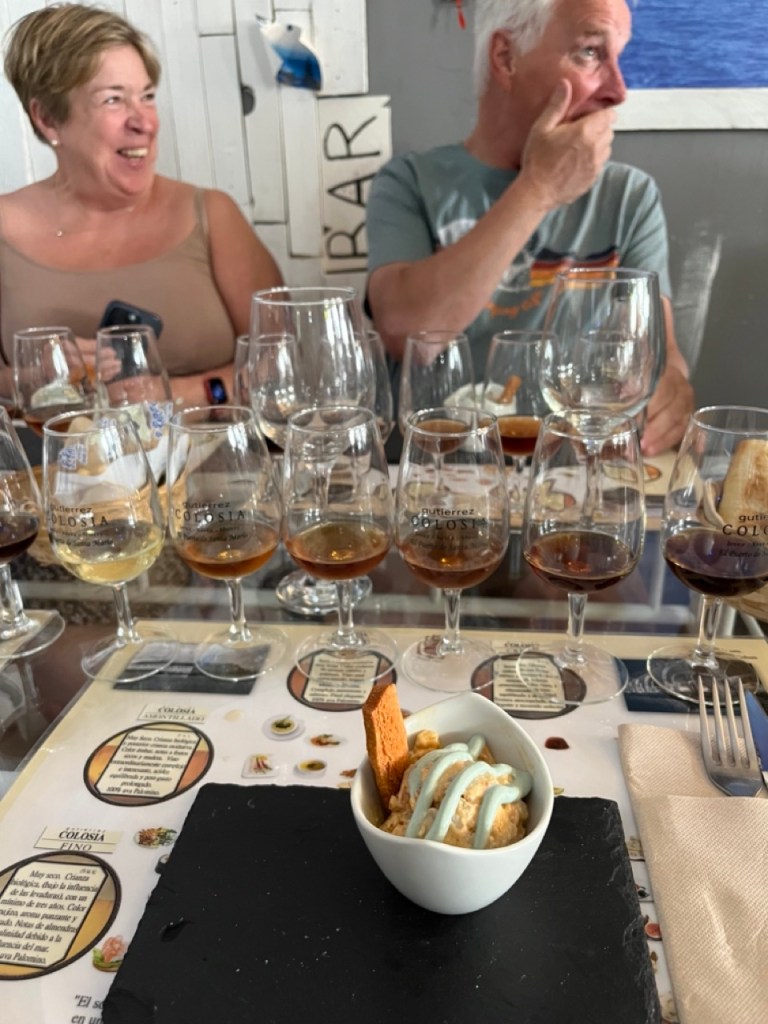 Vi har nu bott på en camping i El Puerto de Santa María en hel vecka. Det har ömsom regnat och stormat och ömsom varit fint väder. I den lilla staden finns en mysig hamn med restauranger och även inne i staden finns det mycket att välja på. Vi passade också på att gå på Sherry-provning hos en lokal producent som heter Gutierrez Colosia – vi hade trevligt sällskap under guidningen av ett par från London.