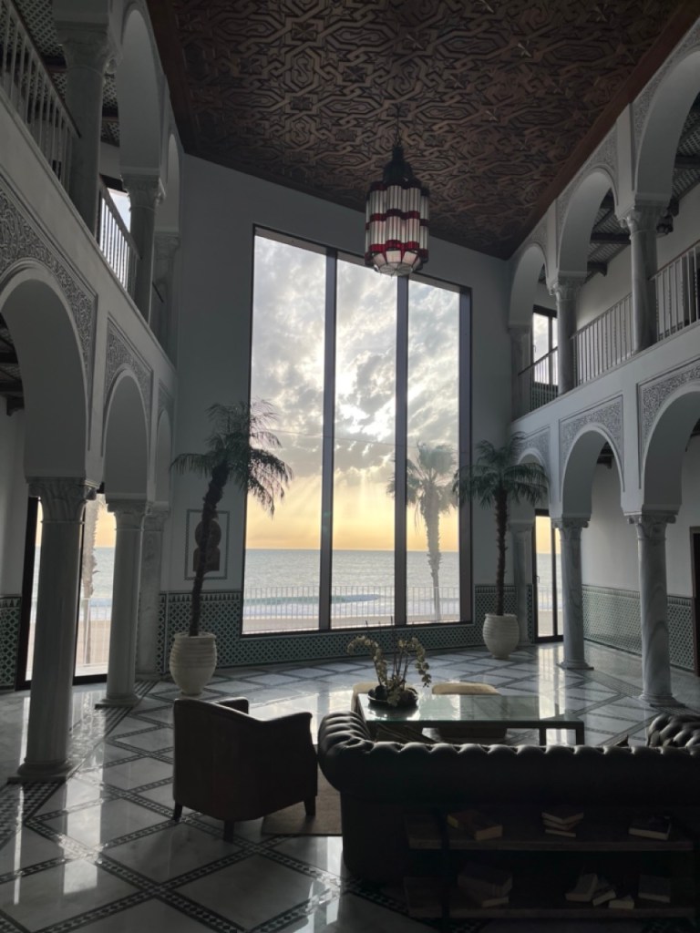 Staffans kusin Johnny och fru Cissi är i Rota under februari så vi har så klart passat på att hänga lite med dem. De bor jättemysigt mitt i Rota i ett lägenhetshotell som heter La Bailla – hela inredningen påminner om Tusen och en natt! Vi träffades först på golfbanan Costa Ballena och hade en trevlig runda. Efter det middag i Rota på hotellet nere i hamnen som vi fått tips om. Vi chansade på att ställa husbilen i hamnen och det blev en dyr natt. Hamnpolisen knackade på framåt natten och bötade oss 😦 Sen passade storm och regn att komma på besök så det blev en ganska medioker och dyr nattsömn.