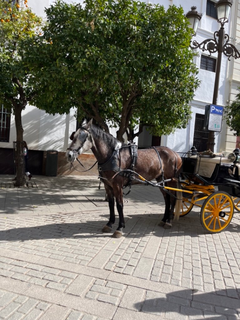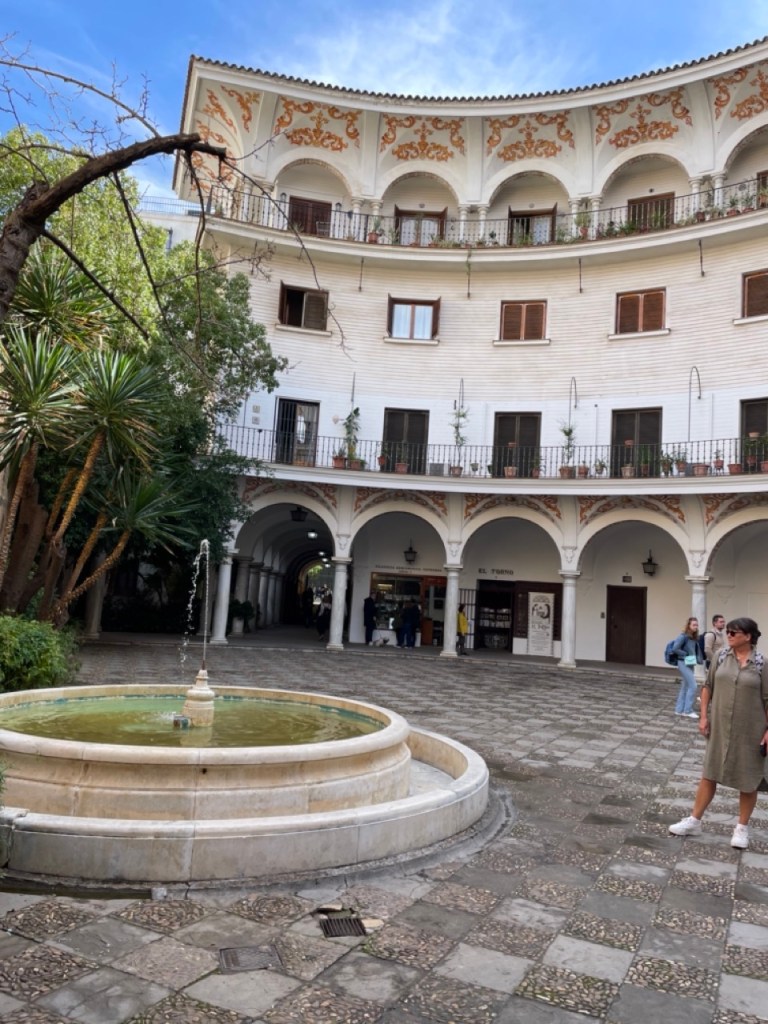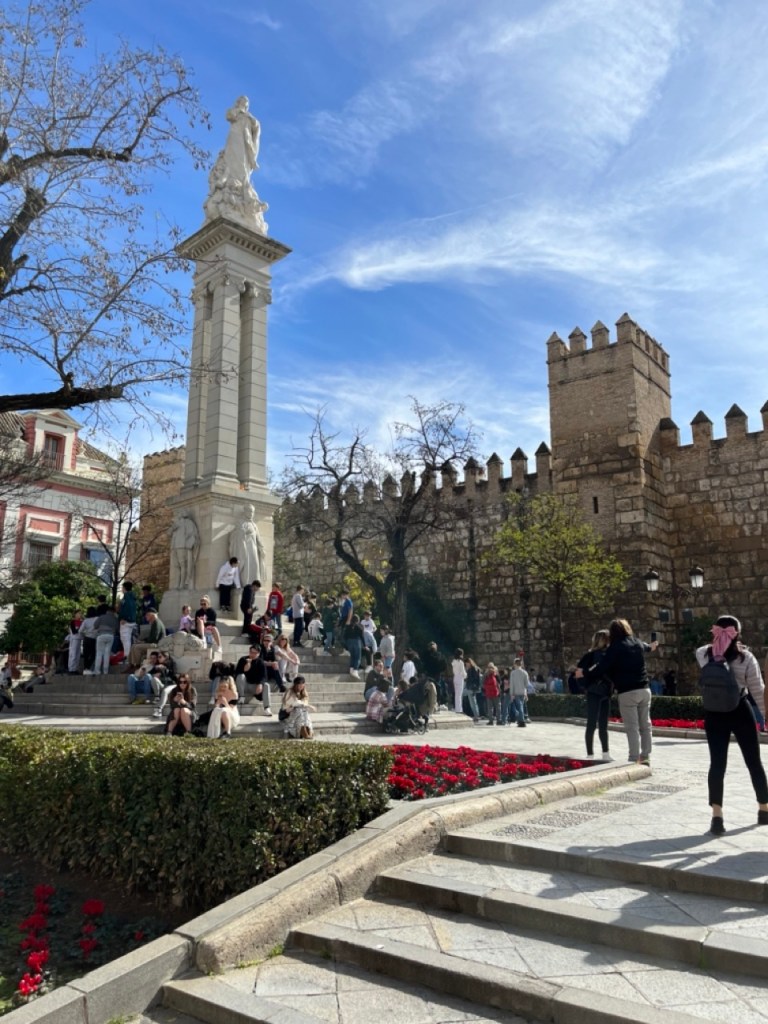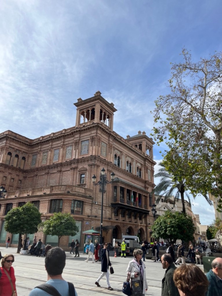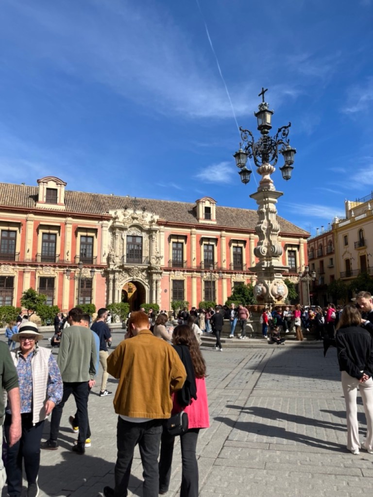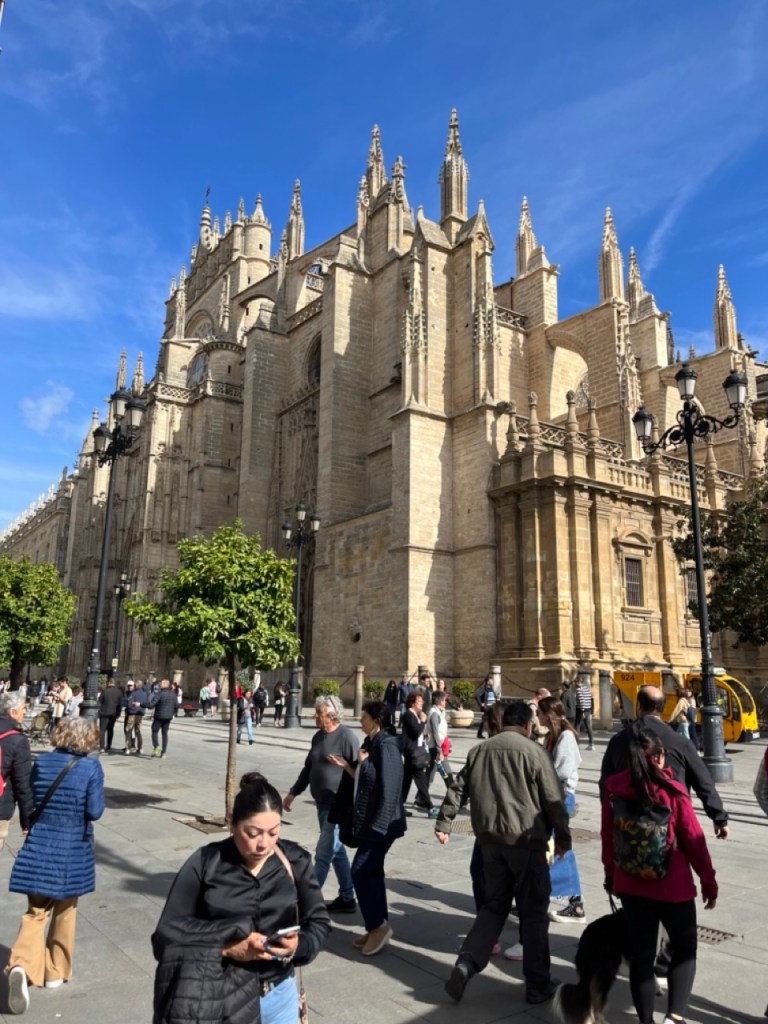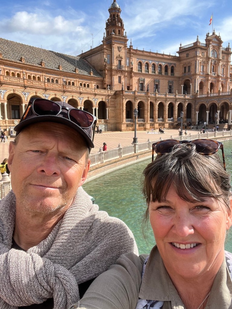 Staffans dag började med bubbel i husbilen. Vi tog sedan bussen ner till stan och började med en gofika. Vi startade vår tur med att bege oss mot katedralen som är imponerande pampig. Det var låååång kö för att komma in så vi valde att fokusera på utsidan. Galet mycket folk i hela stan. Antar att det är normalläge. Tänkte vi skulle ta slottet Alcázar därefter men förstod inte riktigt var det låg (trots Google Maps 🤭). Vi vandrade vidare mot Plaza de España och på vägen dit fanns det också mycket vackert att se. Jag är djupt imponerad över denna vackra stad. Var man än tittar står det något imponerande bygge. Vi har fortfarande inte hittat Alcázar men däremot ett trevligt ställe där vi släckte törsten i våra strupar och därefter vidare mot universitet. Sen var det dags för en lunch i de judiska kvarteren, Barrio Santa Cruz. Här vimlar det av små mysiga krogar i smala gränder, gator och torg.