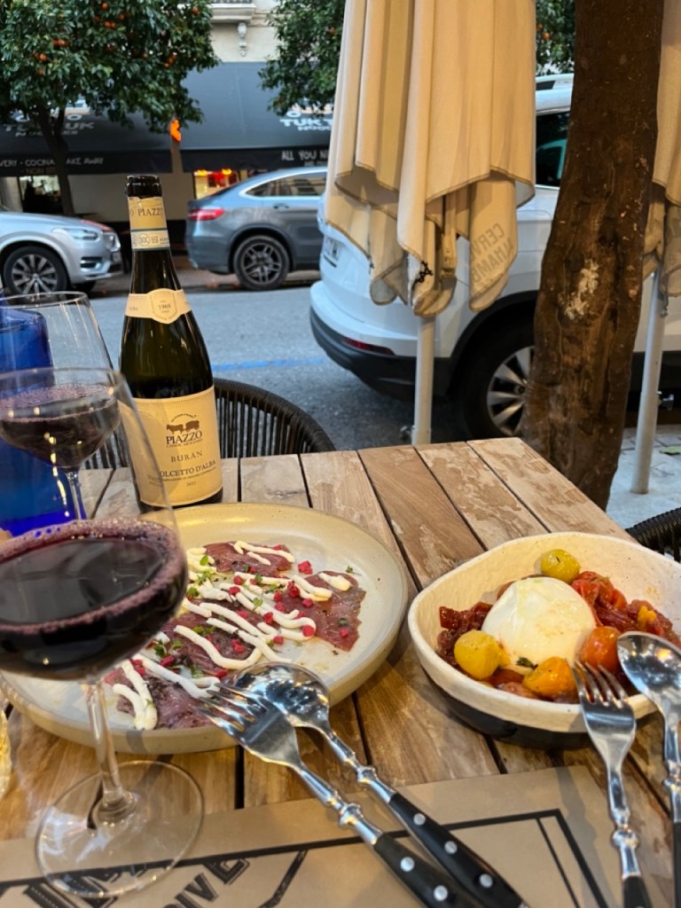 Väl nere njöt vi en god dricka innan det var dags att äta födelsedagsmiddag hos en riktigt bra italienare. Vilken härlig dag och kväll vi fick i Sevilla! Jag rekommenderar verkligen ett besök i den här staden. Vi hade egentligen behövt en dag till för att hinna se allt men, men… den finns ju förhoppningsvis kvar och vi kommer gärna tillbaka.