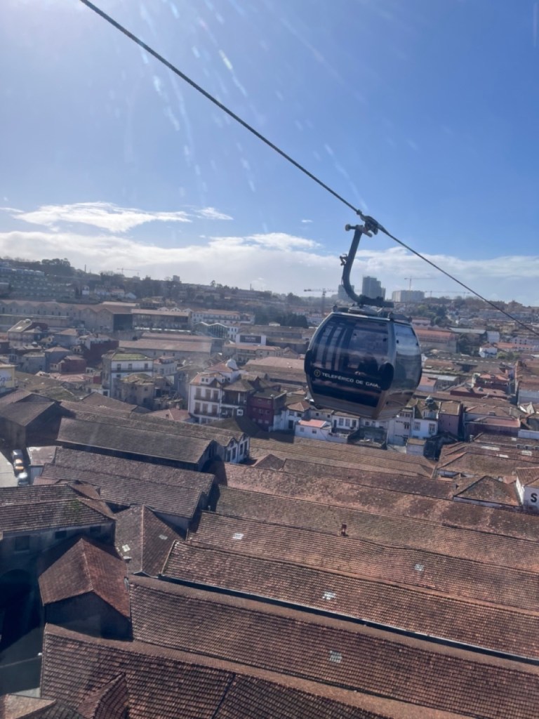 Dagen efter tog vi en Uber in till stan. Efter att ha studerat kartan insåg vi att vi inte skulle hinna med så mycket om vi skulle promenera runt och köpte därför biljetter till Hop-on-Hop-off-buss. Den hade två olika slingor och vi startade med den som gick över till stadsdelen Gaia där alla Portvinsbryggerier ligger. Staden är väldigt kuperad och för att ta sig ner till alla portvinstillverkare var det bara att välja på apostlahästarna nerför backarna eller att ta linbana ner. Vi valde linbana och fick då också en härlig utsikt över floden och broarna.